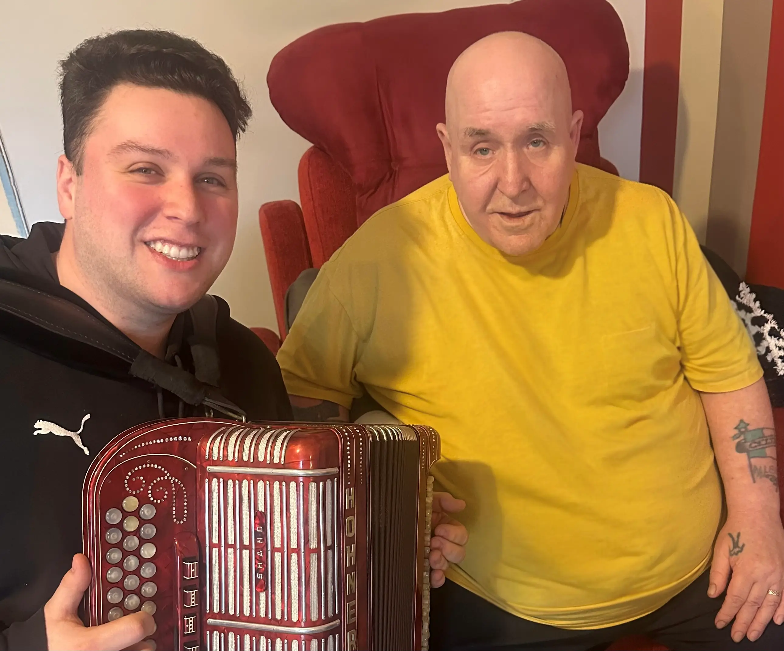A real honour this morning to meet the 1987 All Scotland Accordion Champion Billy McGuire, I’ve been listening to his music since starting, we have spoke on the phone a lot over the years, he was the last button accordion player to win the championship before I had the honour of bringing the Jimmy Shand Shield home in 2014. I wasn’t born for 9 years after he won. It was so lovely to play some tunes and have a chat at his home. Billy could do things on the box that no one else could. It was an honour …